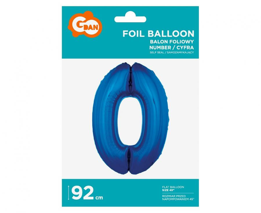 Kék 0-ás szám fólia lufi 92 cm