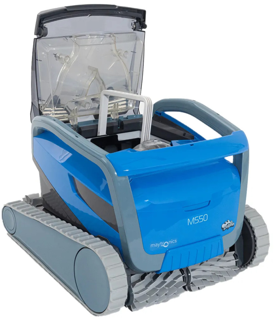 Medencetisztító robot, Dolphin M550, teljes medencetisztítás (padló, fal és vízvonal tisztítás), MyDolphin Plus applikáció vezérlés, Dual Drive navigáció, többrétegű szűrőrendszer, 19 m³/h szívóteljesítmény