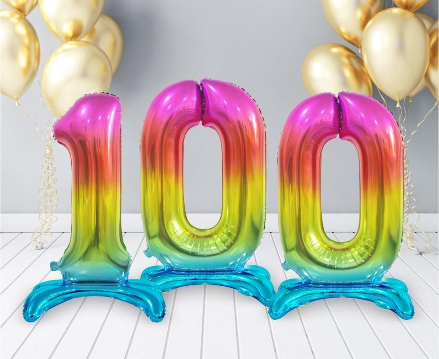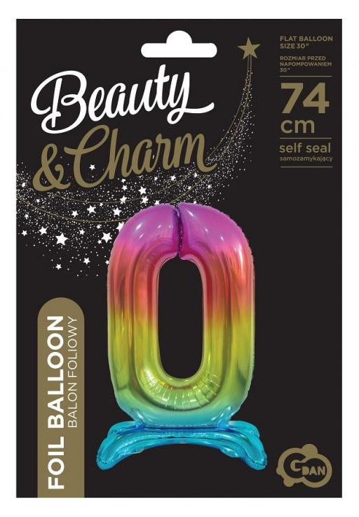 Színes Rainbow 0-ás szám fólia lufi talppal 74 cm
