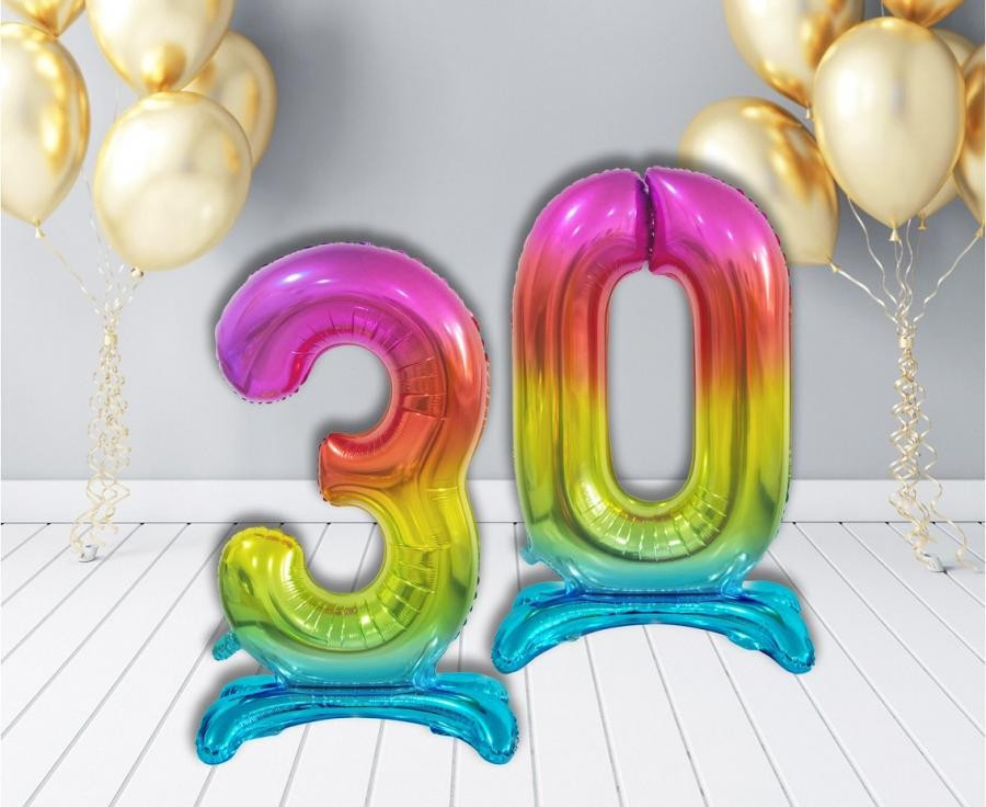 Színes Rainbow 3-as szám fólia lufi talppal 74 cm