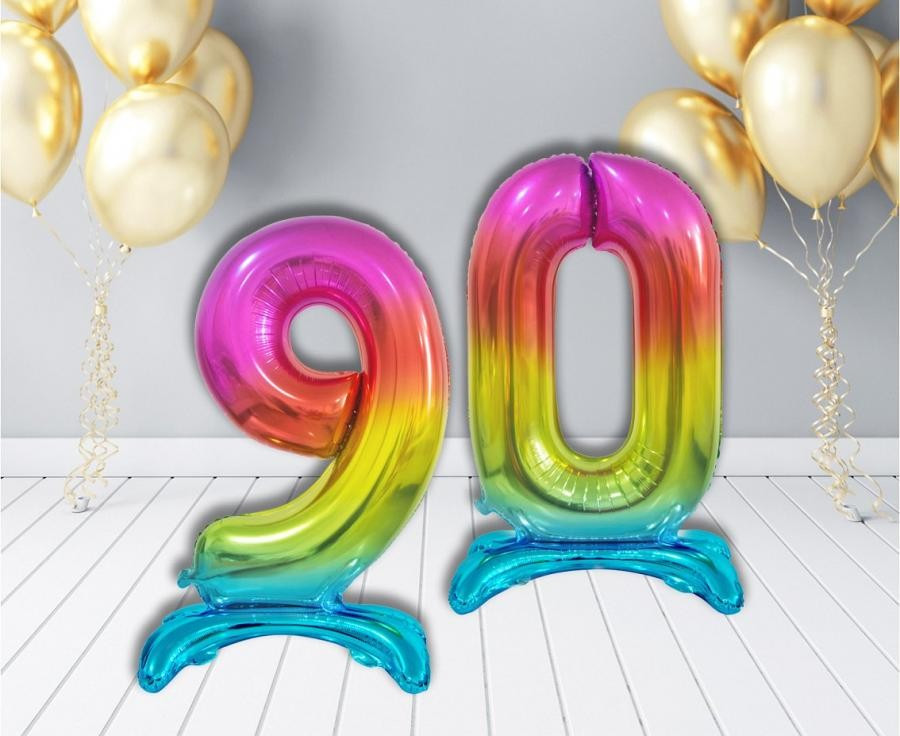 Színes Rainbow 9-es szám fólia lufi talppal 74 cm